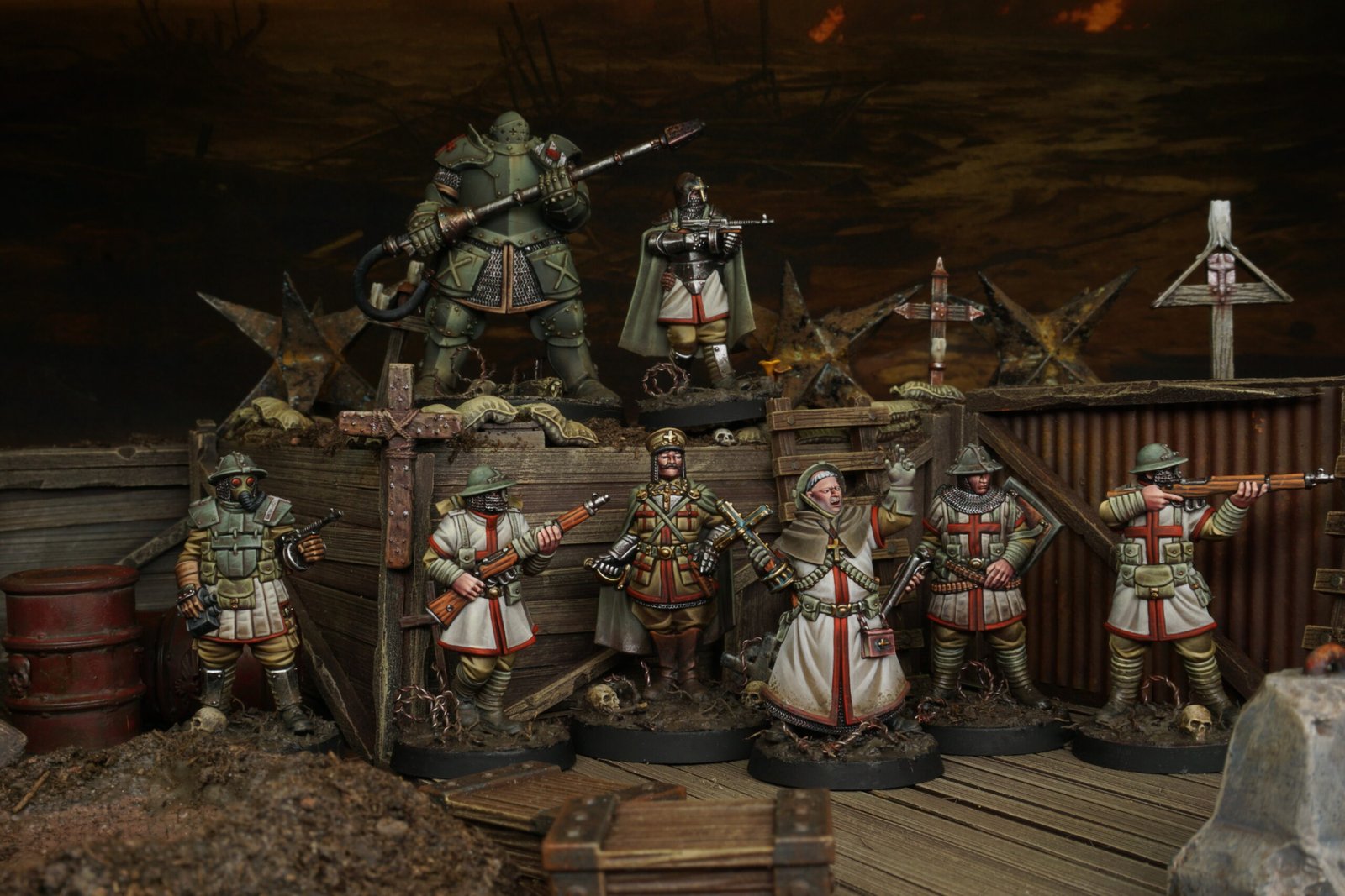 With Trench Crusade (TC) gaining momentum and the community steadily expanding, it felt like the perfect moment to put together something practical for both newcomers and seasoned painters alike. This Trench Primer Vol. 1, prepared for Hollow Crown Miniatures, is meant to be exactly that: a compact but focused guide to approach miniatures, basing and even scenery!