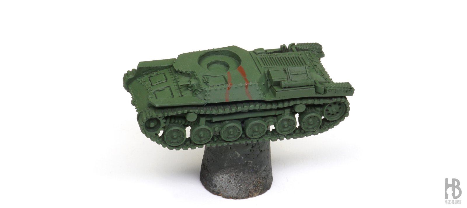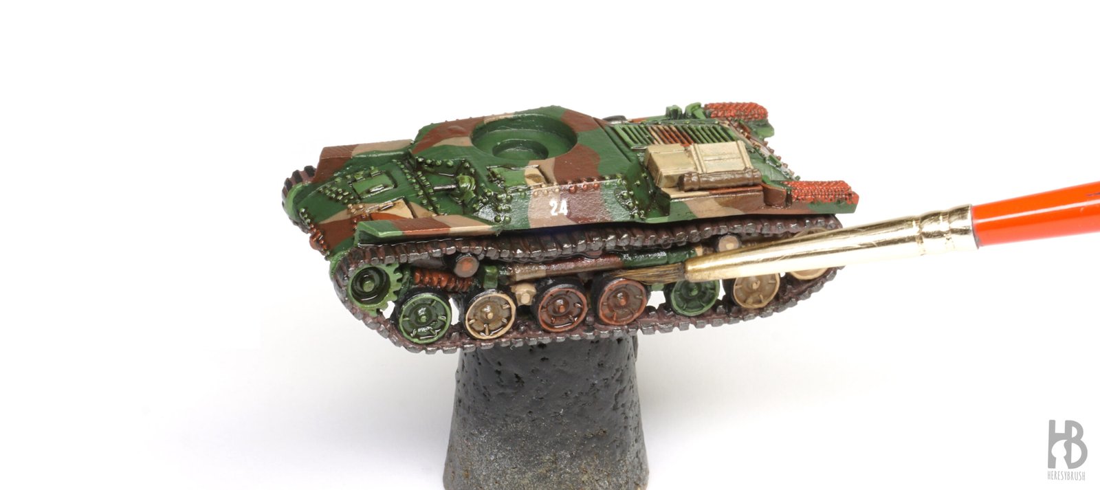 When painting camouflage on a group of tanks it is important to vary the location and shape of the spots on each vehicle to avoid repetition. In reality, each crew or unit would have painted their tanks slightly differently. A helpful approach is to keep the previously painted tanks nearby as reference, and consciously alter the location and form of the camo patches as you work through the unit.