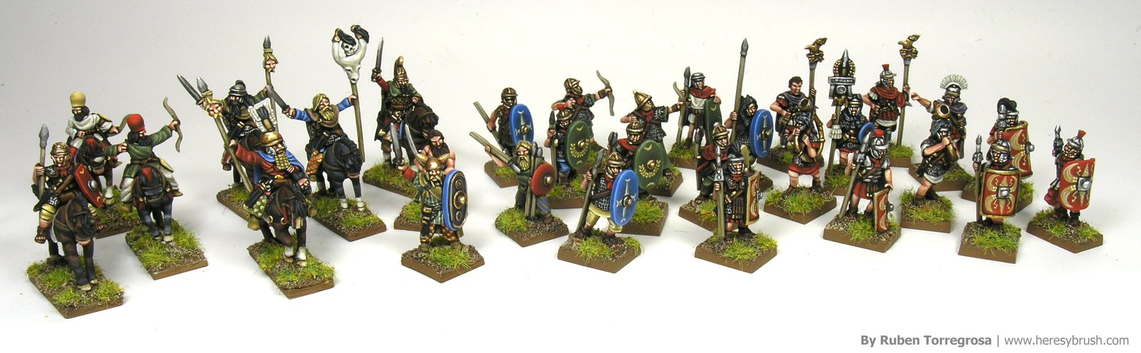 Para ilustrar el artículo voy a utilizar un escudo romano de Early empire (miniaturas de Corvus belli), ya que en esencia todos los escudos seguirían las mismas indicaciones.