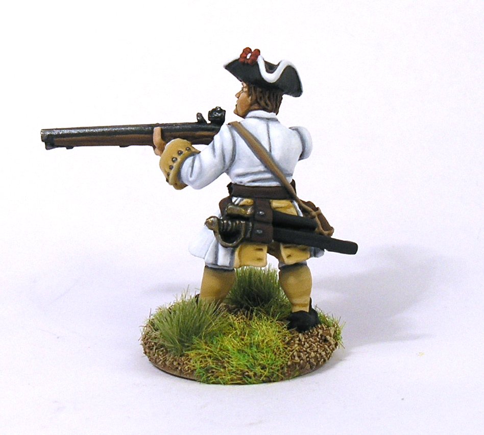 Como color oscuro hay varias posibilidades. Si queremos que nuestra pieza a pintar tenga un aspecto usado o viejo habrá que usar un tono crema, por ejemplo Arena iraquí de Vallejo. Si por el contrario, no buscamos recrear una ropa vieja, si no que buscamos un aspecto más sobrio y limpio usaremos un tono grisáceo. En mi caso, suelo usar un tono gris azulado (Azul intermedio, de Vallejo), ya que da mayor solidez al blanco.